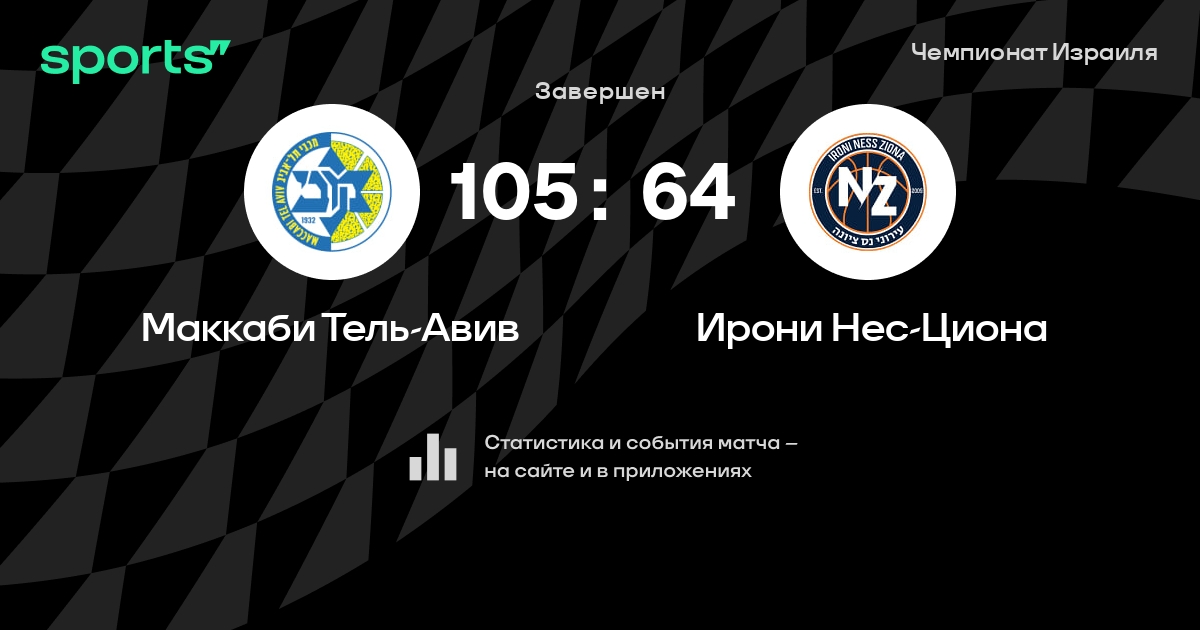 В прошедшем матче в рамках турнира Чемпионат Израиля (Четвертьфинал) состоялась встреча команд Маккаби Тель-Авив - Ирони Нес-Циона в городе Тель-Авив (Израиль) на стадионе Менора-Мивтахим Арена (вместимость - 11700)