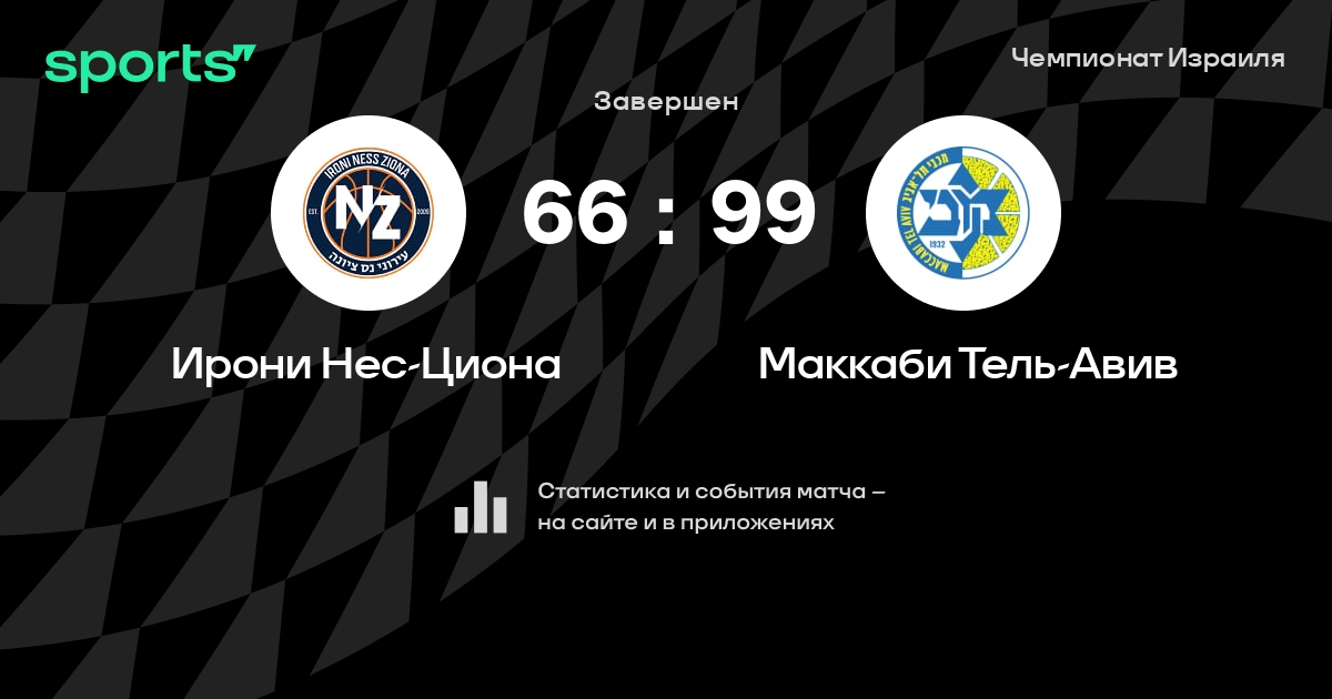 В прошедшем матче в рамках турнира Чемпионат Израиля (Четвертьфинал) состоялась встреча команд Ирони Нес-Циона - Маккаби Тель-Авив в городе на стадионе Lev Hamoshava
