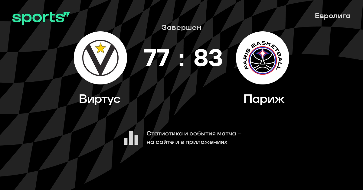 В прошедшем матче в рамках турнира Евролига состоялась встреча команд Виртус - Париж в городе Болонья (Италия) на стадионе Виртус Арена (вместимость - 9980)