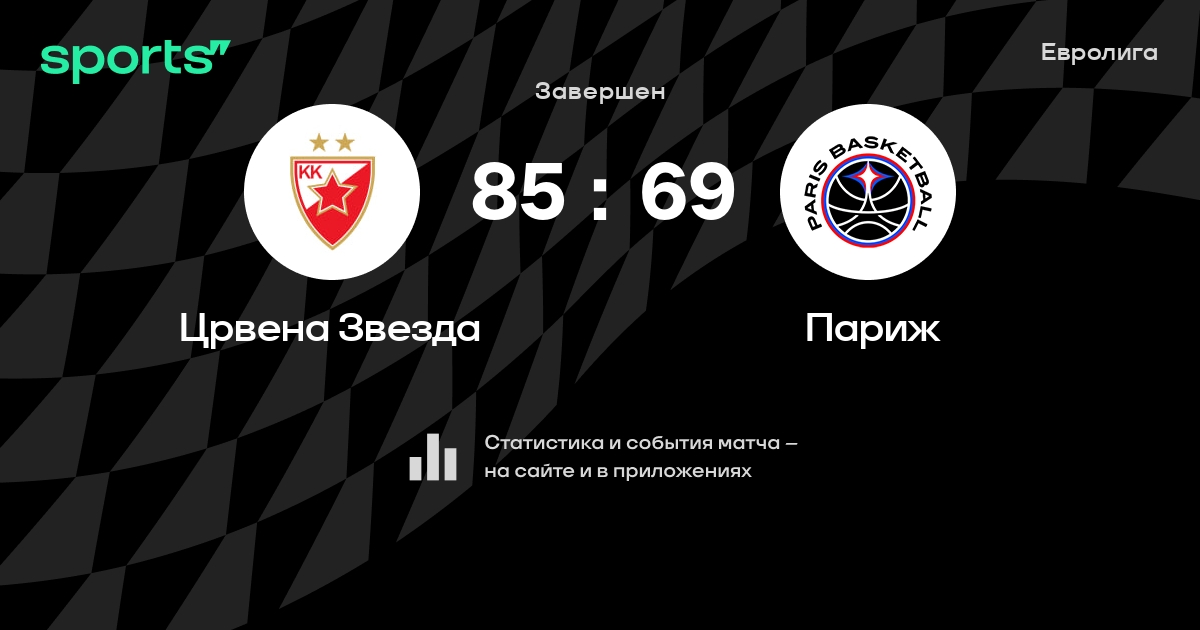 В прошедшем матче в рамках турнира Евролига состоялась встреча команд Црвена Звезда - Париж в городе Белград (Сербия) на стадионе Белград Арена (вместимость - 22386)