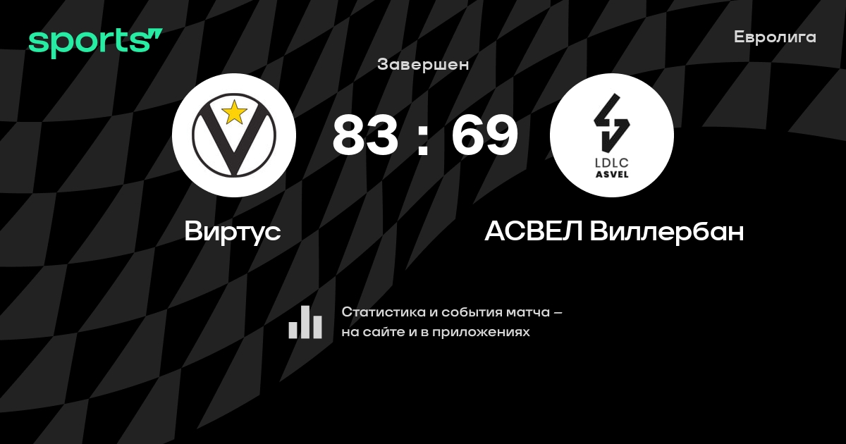 В прошедшем матче в рамках турнира Евролига состоялась встреча команд Виртус - АСВЕЛ Виллербан в городе Болонья (Италия) на стадионе Виртус Арена (вместимость - 9980)