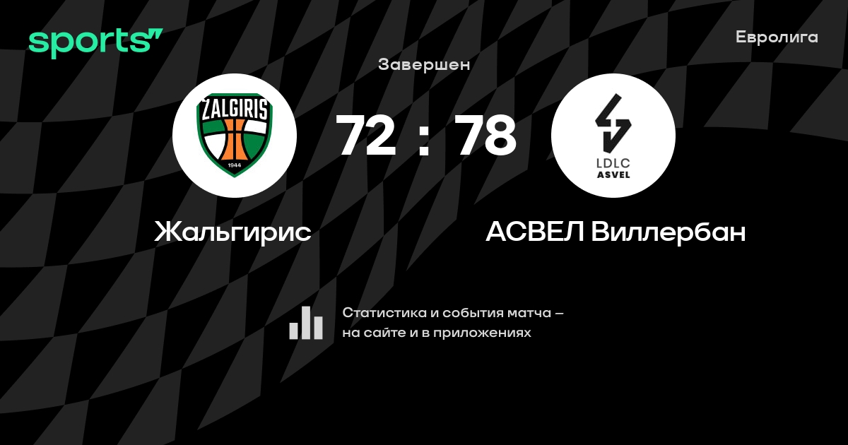 В прошедшем матче в рамках турнира Евролига состоялась встреча команд Жальгирис - АСВЕЛ Виллербан в городе Каунас (Литва) на стадионе Жальгирис Арена