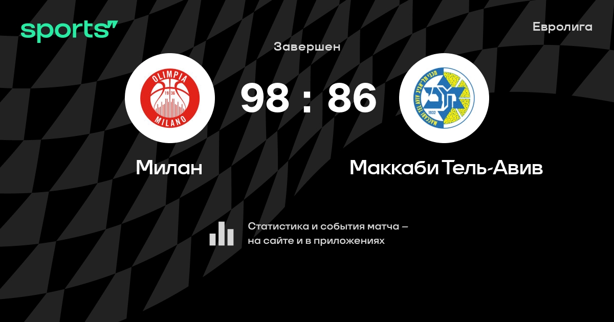 В прошедшем матче в рамках турнира Евролига состоялась встреча команд Милан - Маккаби Тель-Авив в городе Ассаго (Италия) на стадионе Униполь Форум (вместимость - 11200)