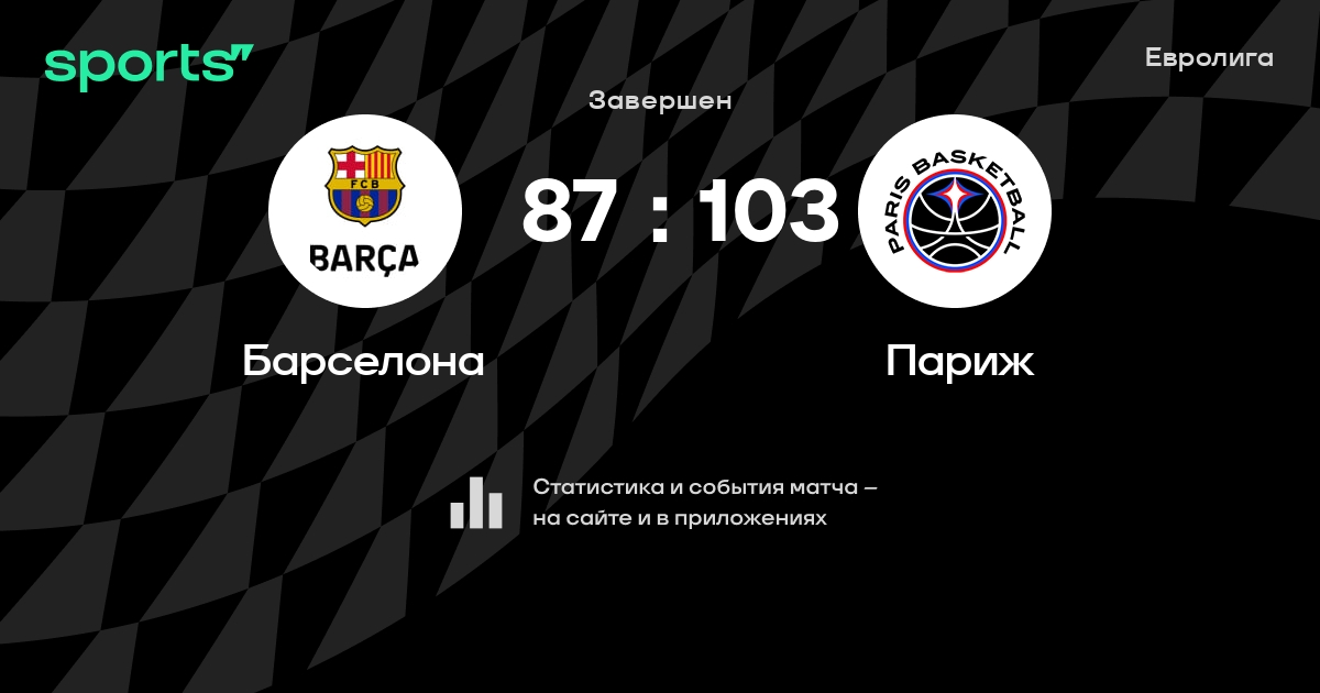 В прошедшем матче в рамках турнира Евролига состоялась встреча команд Барселона - Париж в городе Барселона (Испания) на стадионе Палау Блауграна (вместимость - 7585)