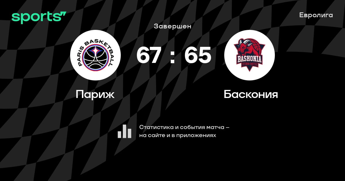 В прошедшем матче в рамках турнира Евролига состоялась встреча команд Париж - Баскония в городе Париж (Франция) на стадионе Адидас Арена (вместимость - 8000)