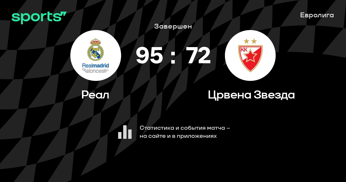 В прошедшем матче в рамках турнира Евролига состоялась встреча команд Реал - Црвена Звезда в городе Мадрид (Испания) на стадионе Мовистар Арена (вместимость - 15000)