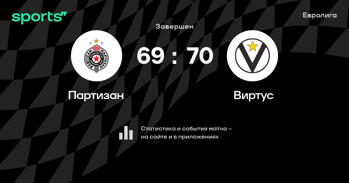 В прошедшем матче в рамках турнира Евролига состоялась встреча команд Партизан - Виртус в городе Белград (Сербия) на стадионе Белград Арена (вместимость - 22386)