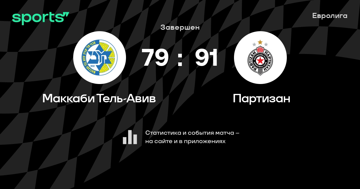 В прошедшем матче в рамках турнира Евролига состоялась встреча команд Маккаби Тель-Авив - Партизан в городе Белград (Сербия) на стадионе Александар Николич Холл (вместимость - 7000)