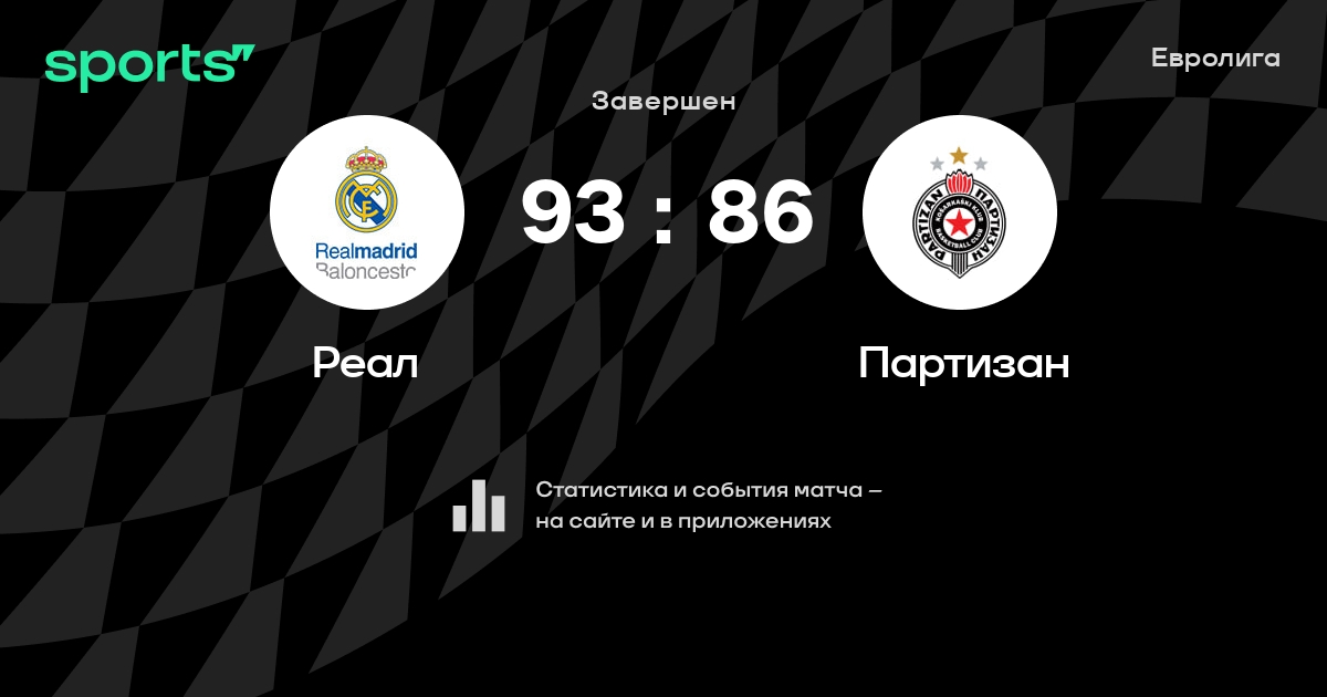 В прошедшем матче в рамках турнира Евролига состоялась встреча команд Реал - Партизан в городе Мадрид (Испания) на стадионе Мовистар Арена (вместимость - 15000)
