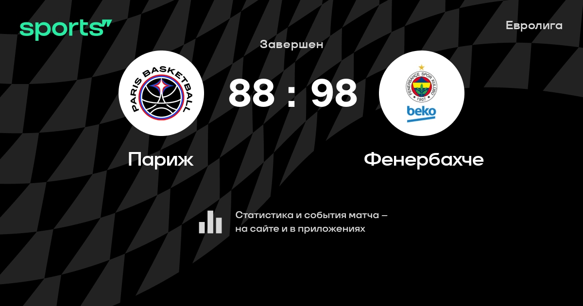 В прошедшем матче в рамках турнира Евролига (Четвертьфинал) состоялась встреча команд Париж - Фенербахче в городе Париж (Франция) на стадионе Адидас Арена (вместимость - 8000)