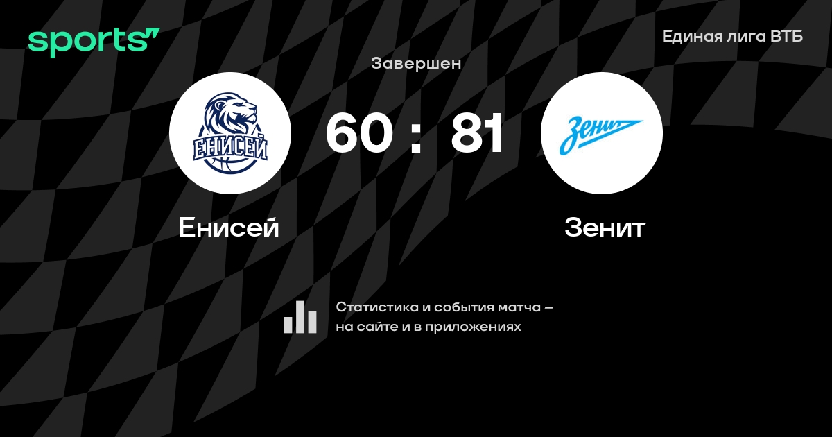 В прошедшем матче в рамках турнира Единая лига ВТБ состоялась встреча команд Енисей - Зенит в городе Красноярск (Россия) на стадионе Арена-Север