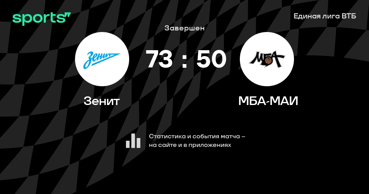 В прошедшем матче в рамках турнира Единая лига ВТБ состоялась встреча команд Зенит - МБА-МАИ в городе Санкт-Петербург (Россия) на стадионе КСК Арена (вместимость - 7120)