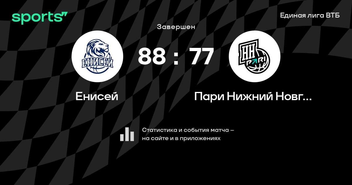 В прошедшем матче в рамках турнира Единая лига ВТБ состоялась встреча команд Енисей - Пари Нижний Новгород в городе Красноярск (Россия) на стадионе Арена-Север