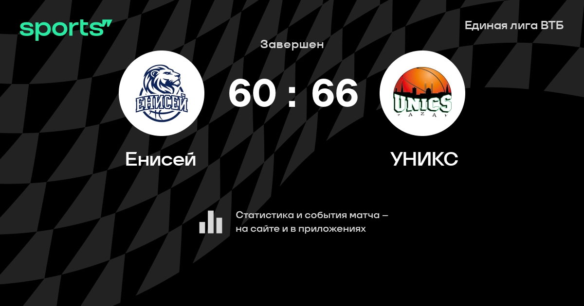 В прошедшем матче в рамках турнира Единая лига ВТБ состоялась встреча команд Енисей - УНИКС в городе Красноярск (Россия) на стадионе Арена-Север