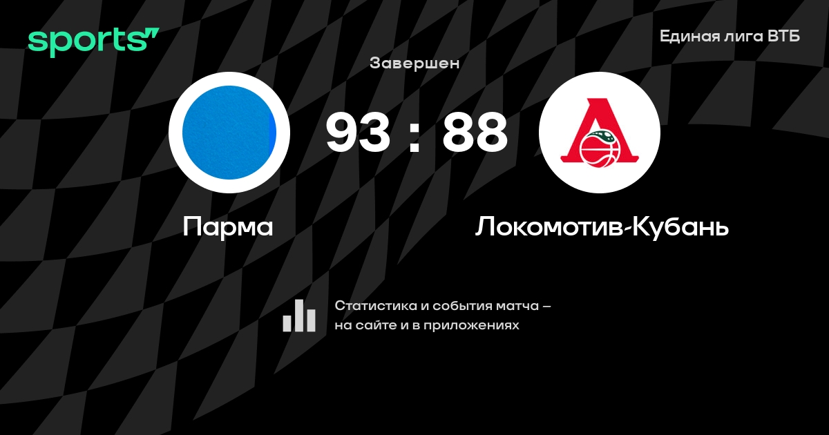 В прошедшем матче в рамках турнира Единая лига ВТБ состоялась встреча команд Парма - Локомотив-Кубань в городе Пермь (Россия) на стадионе УДС Молот (вместимость - 7000)