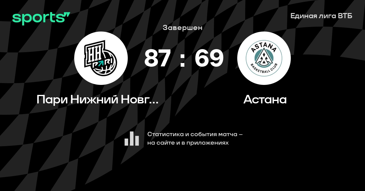В прошедшем матче в рамках турнира Единая лига ВТБ состоялась встреча команд Пари Нижний Новгород - Астана в городе Нижний Новгород (Россия) на стадионе КРК Нагорный (вместимость - 5600)