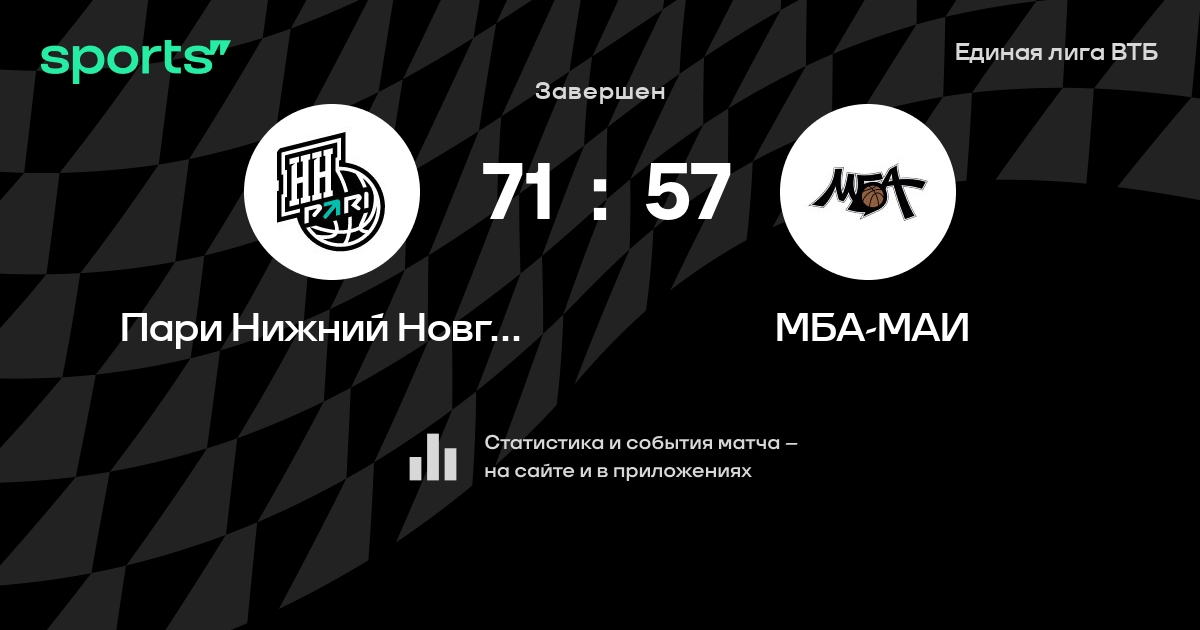 В прошедшем матче в рамках турнира Единая лига ВТБ состоялась встреча команд Пари Нижний Новгород - МБА-МАИ в городе Нижний Новгород (Россия) на стадионе КРК Нагорный (вместимость - 5600)