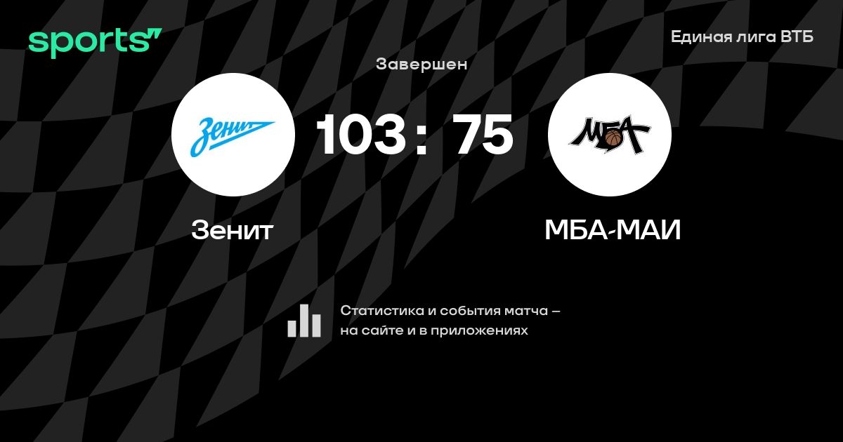 В прошедшем матче в рамках турнира Единая лига ВТБ состоялась встреча команд Зенит - МБА-МАИ в городе Санкт-Петербург (Россия) на стадионе КСК Арена (вместимость - 7120)