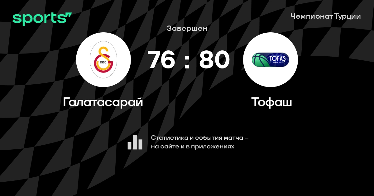 В прошедшем матче в рамках турнира Чемпионат Турции состоялась встреча команд Галатасарай - Тофаш в городе Стамбул (Турция) на стадионе Центр развития баскетбола (вместимость - 10000)