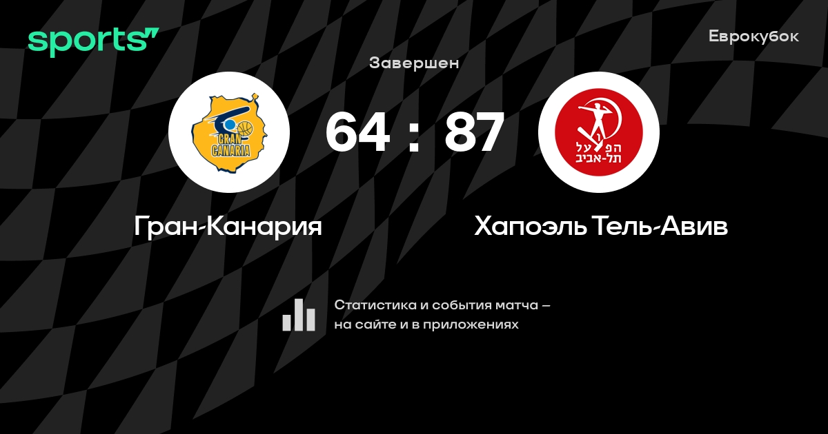В прошедшем матче в рамках турнира Еврокубок состоялась встреча команд Гран-Канария - Хапоэль Тель-Авив в городе Лас-Пальмас-де-Гран-Канария (Испания) на стадионе Гран-Канария Арена (вместимость - 9865)