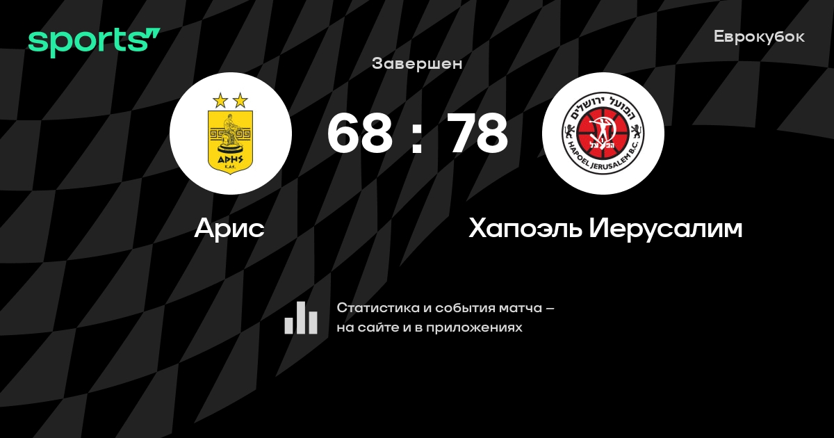В прошедшем матче в рамках турнира Еврокубок состоялась встреча команд Арис - Хапоэль Иерусалим в городе на стадионе Sala Alexandreio Melathron Nikos Galis