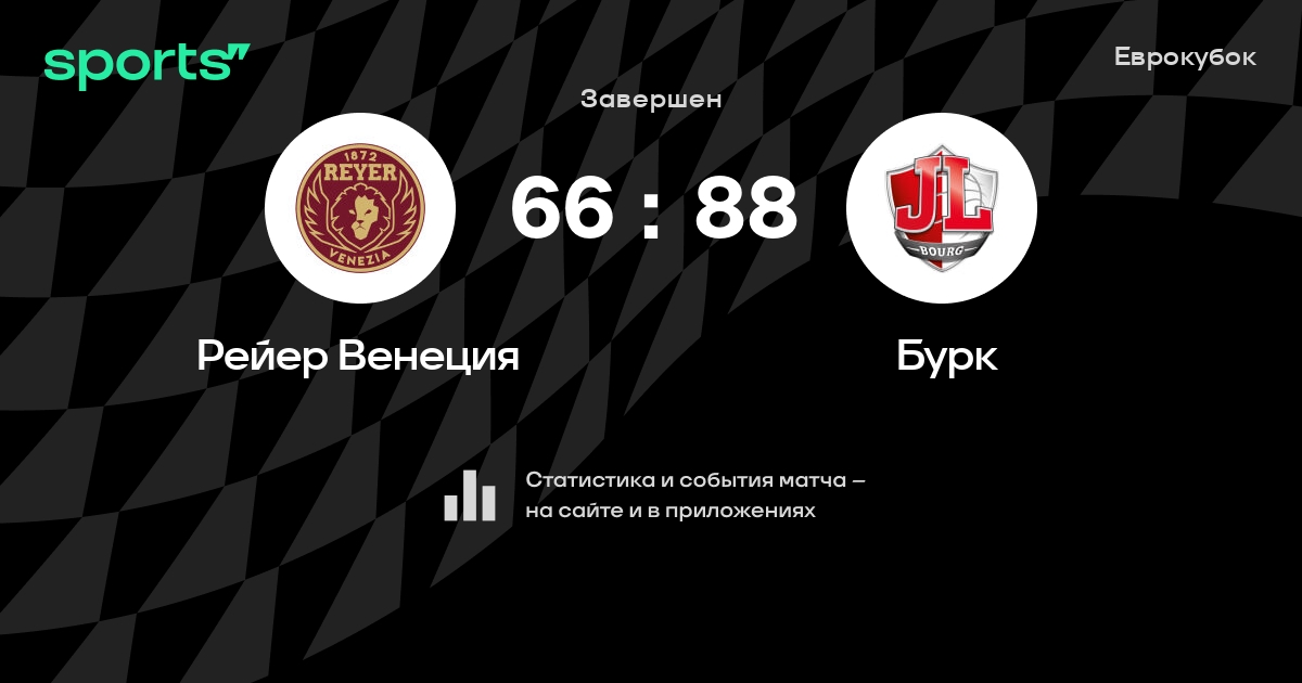 В прошедшем матче в рамках турнира Еврокубок состоялась встреча команд Рейер Венеция - Бурк в городе на стадионе Palasport Taliercio