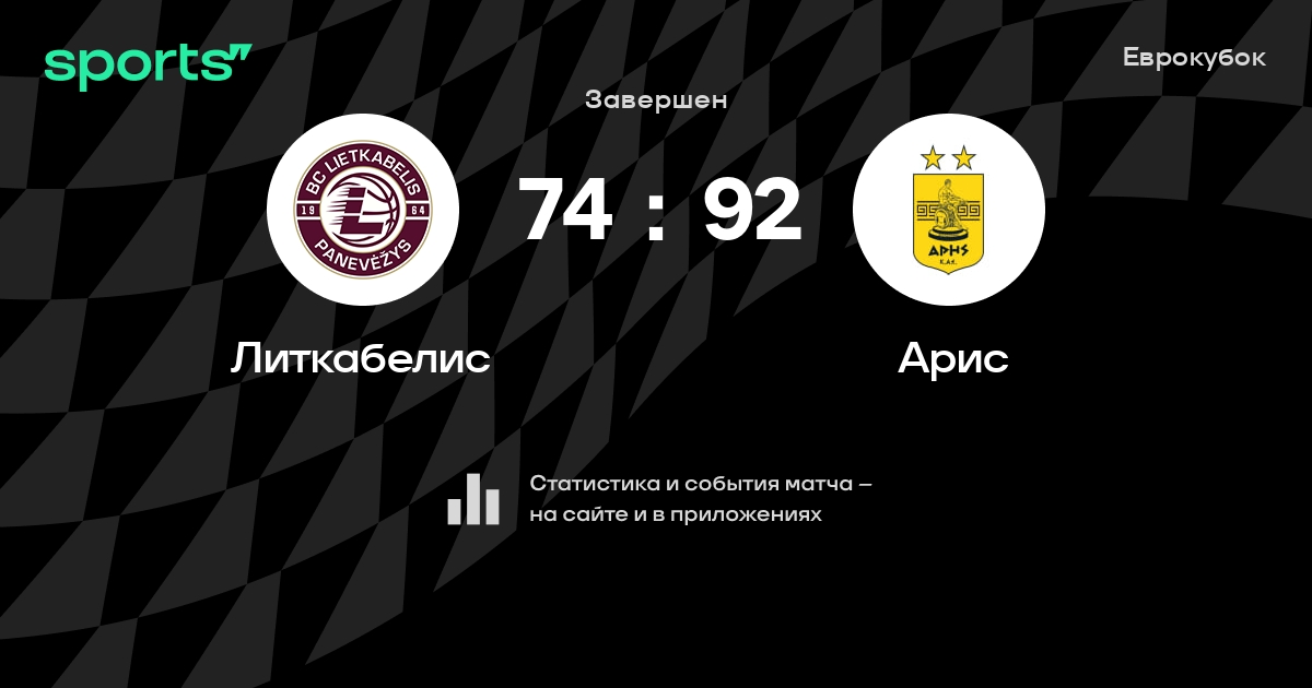 В прошедшем матче в рамках турнира Еврокубок состоялась встреча команд Литкабелис - Арис в городе Паневежис (Литва) на стадионе Калнапилио Арена (вместимость - 5600)