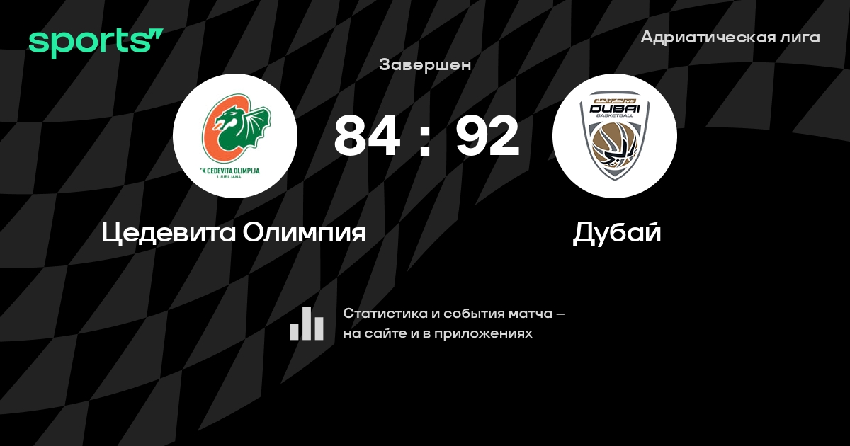 В прошедшем матче в рамках турнира Адриатическая лига состоялась встреча команд Цедевита Олимпия - Дубай в городе на стадионе Dvorana Stožice