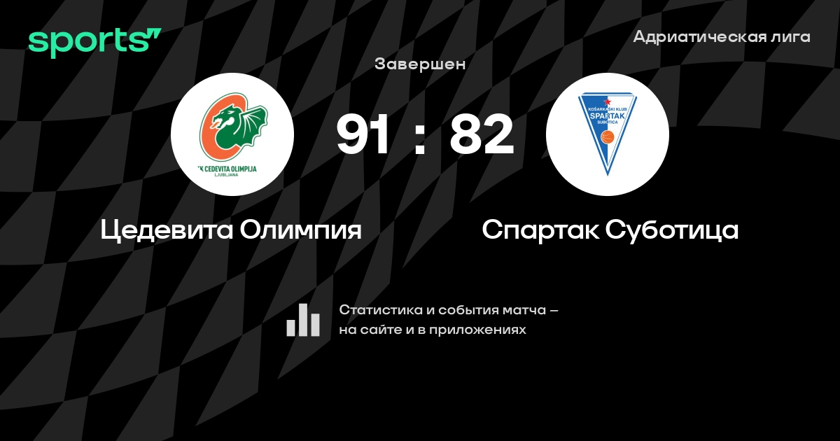 В прошедшем матче в рамках турнира Адриатическая лига состоялась встреча команд Цедевита Олимпия - Спартак Суботица в городе Ljubljana на стадионе Hala Tivoli