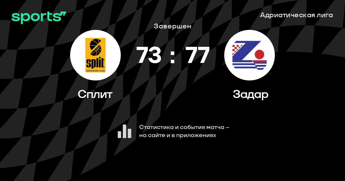 В прошедшем матче в рамках турнира Адриатическая лига состоялась встреча команд Сплит - Задар в городе на стадионе Arena Gripe