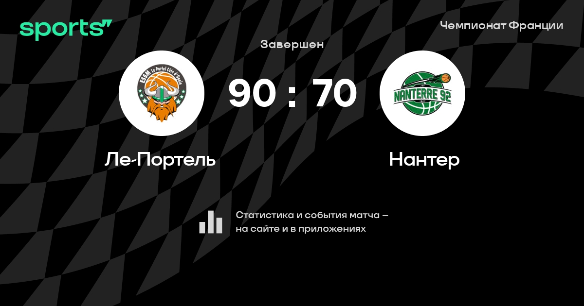 В прошедшем матче в рамках турнира Чемпионат Франции состоялась встреча команд Ле-Портель - Нантер в городе на стадионе Le Chaudron