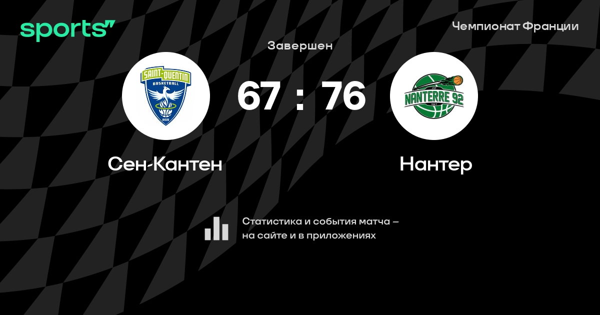 В прошедшем матче в рамках турнира Чемпионат Франции состоялась встреча команд Сен-Кантен - Нантер в городе на стадионе Palais des Sports Pierre-Rate