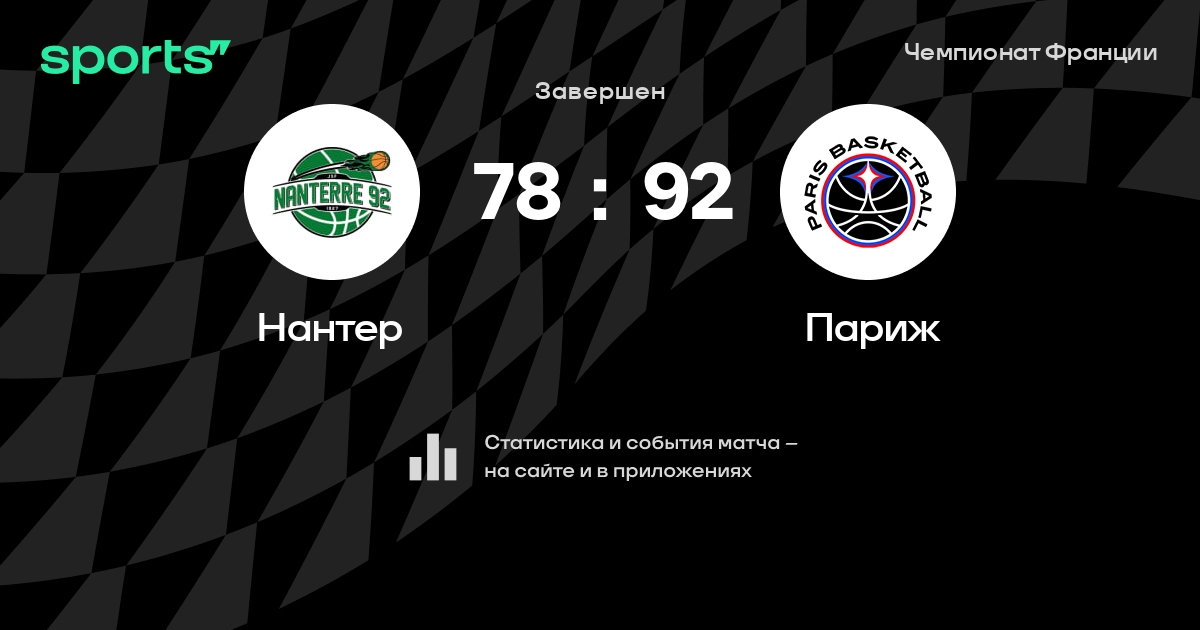 В прошедшем матче в рамках турнира Чемпионат Франции состоялась встреча команд Нантер - Париж в городе  на стадионе Palais des Sports Maurice Thorez
