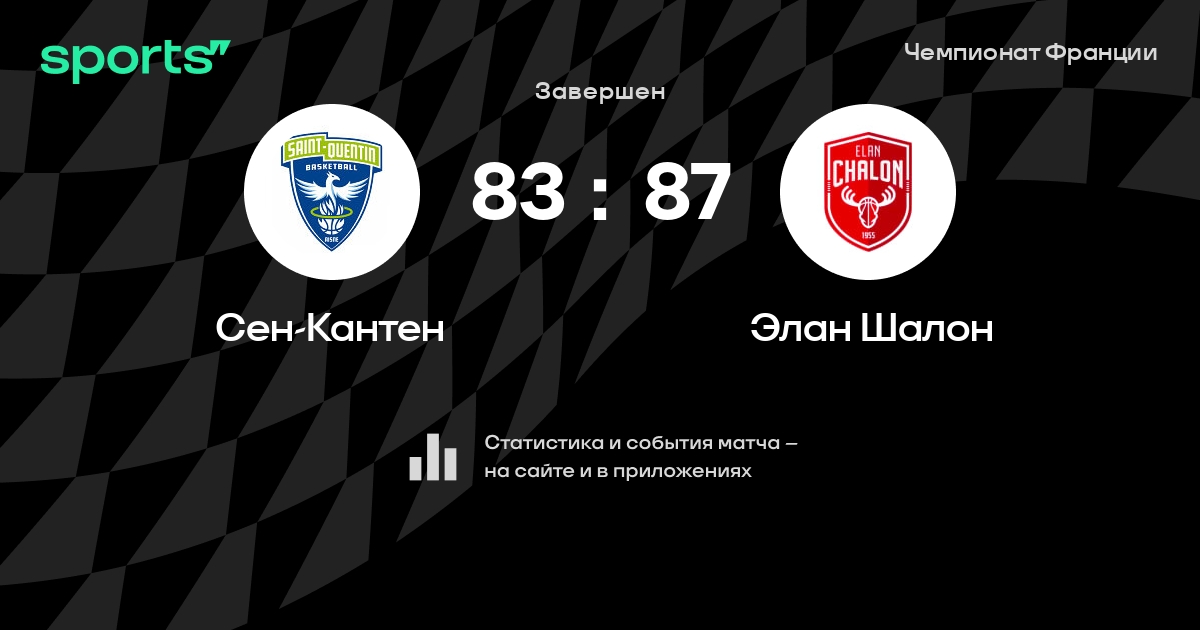 В прошедшем матче в рамках турнира Чемпионат Франции состоялась встреча команд Сен-Кантен - Элан Шалон в городе на стадионе Palais des Sports Pierre-Rate