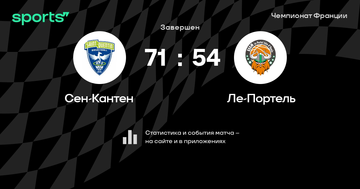 В прошедшем матче в рамках турнира Чемпионат Франции состоялась встреча команд Сен-Кантен - Ле-Портель в городе на стадионе Palais des Sports Pierre-Rate
