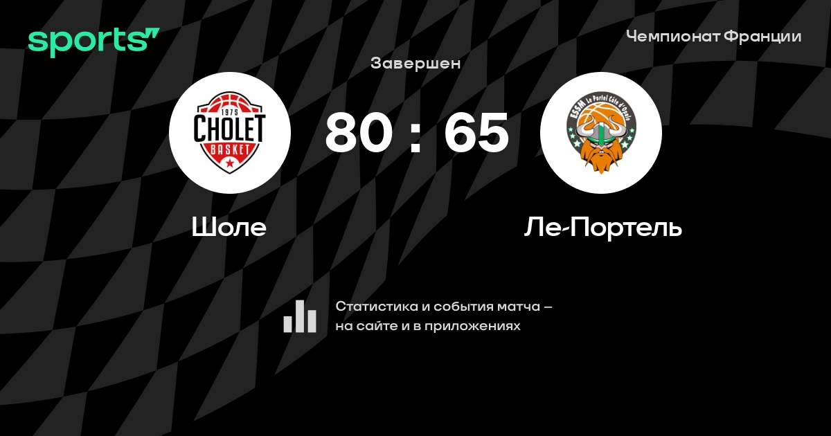 В прошедшем матче в рамках турнира Чемпионат Франции состоялась встреча команд Шоле - Ле-Портель в городе на стадионе Salle de la Meilleraie