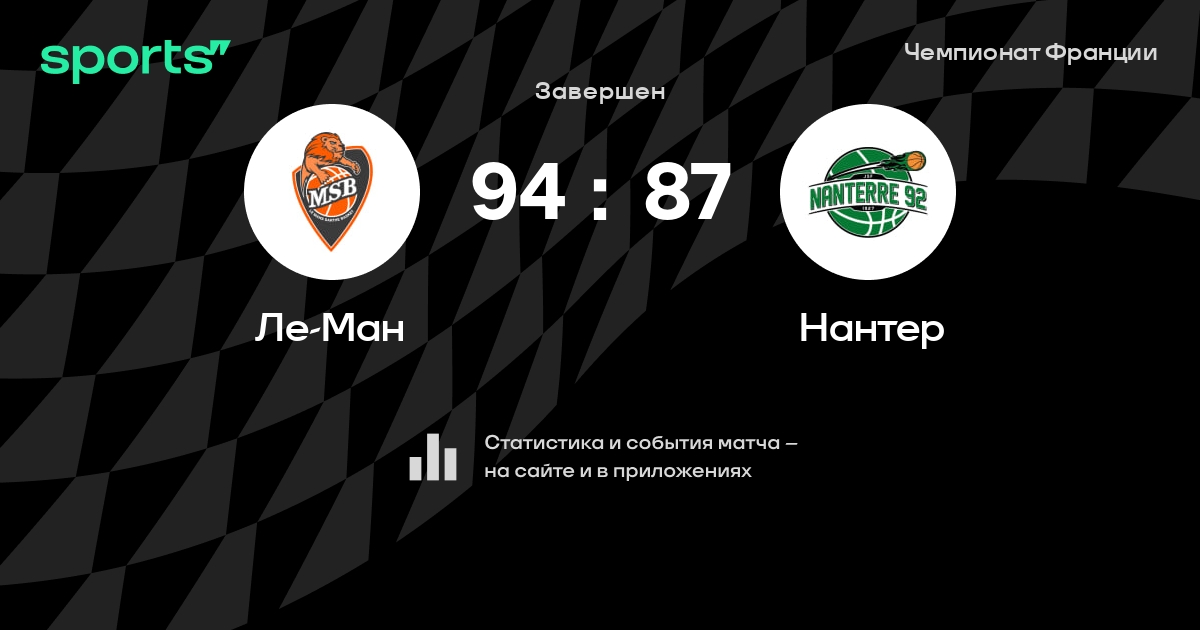 В прошедшем матче в рамках турнира Чемпионат Франции состоялась встреча команд Ле-Ман - Нантер в городе на стадионе Antarès