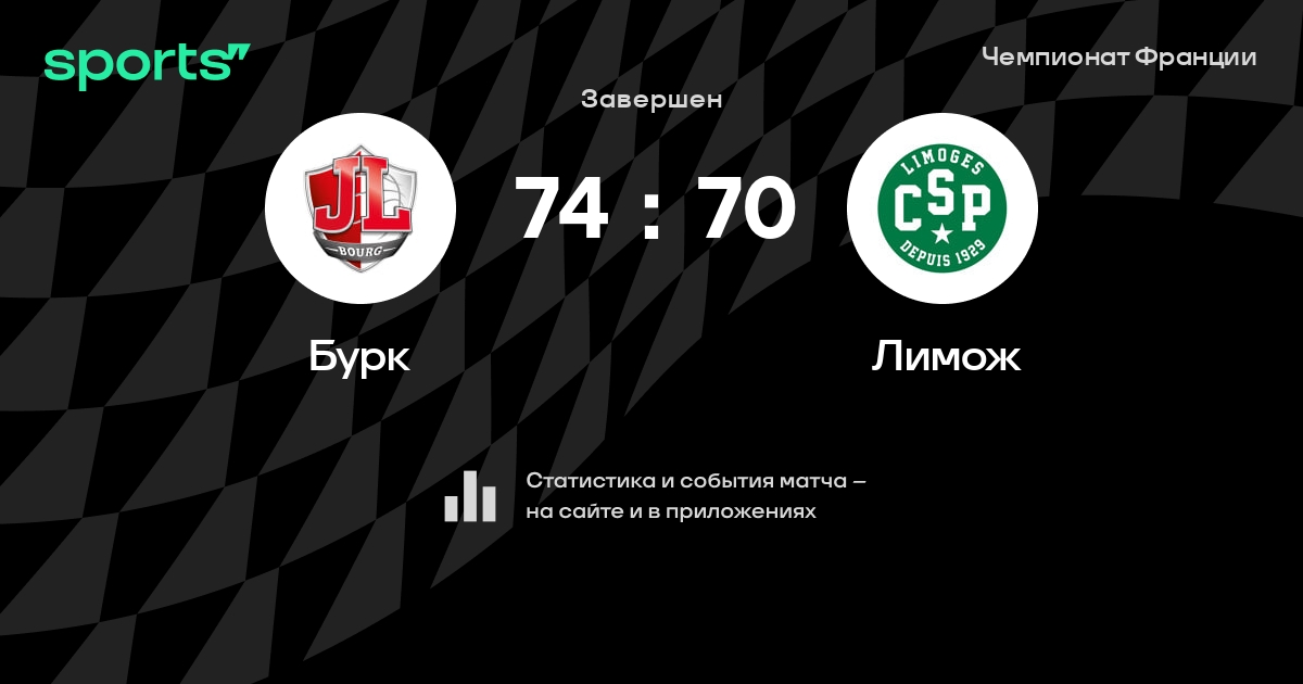 В прошедшем матче в рамках турнира Чемпионат Франции состоялась встреча команд Бурк - Лимож в городе на стадионе Ekinox