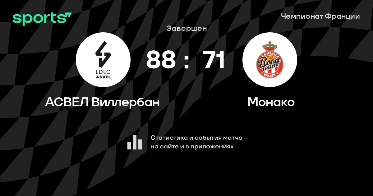 В прошедшем матче в рамках турнира Чемпионат Франции состоялась встреча команд АСВЕЛ Виллербан - Монако в городе Виллербанн (Франция) на стадионе Астробаль (вместимость - 5556)
