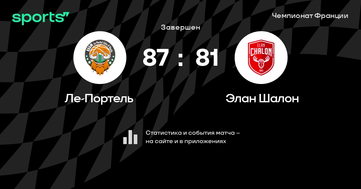 В прошедшем матче в рамках турнира Чемпионат Франции состоялась встреча команд Ле-Портель - Элан Шалон в городе на стадионе Le Chaudron