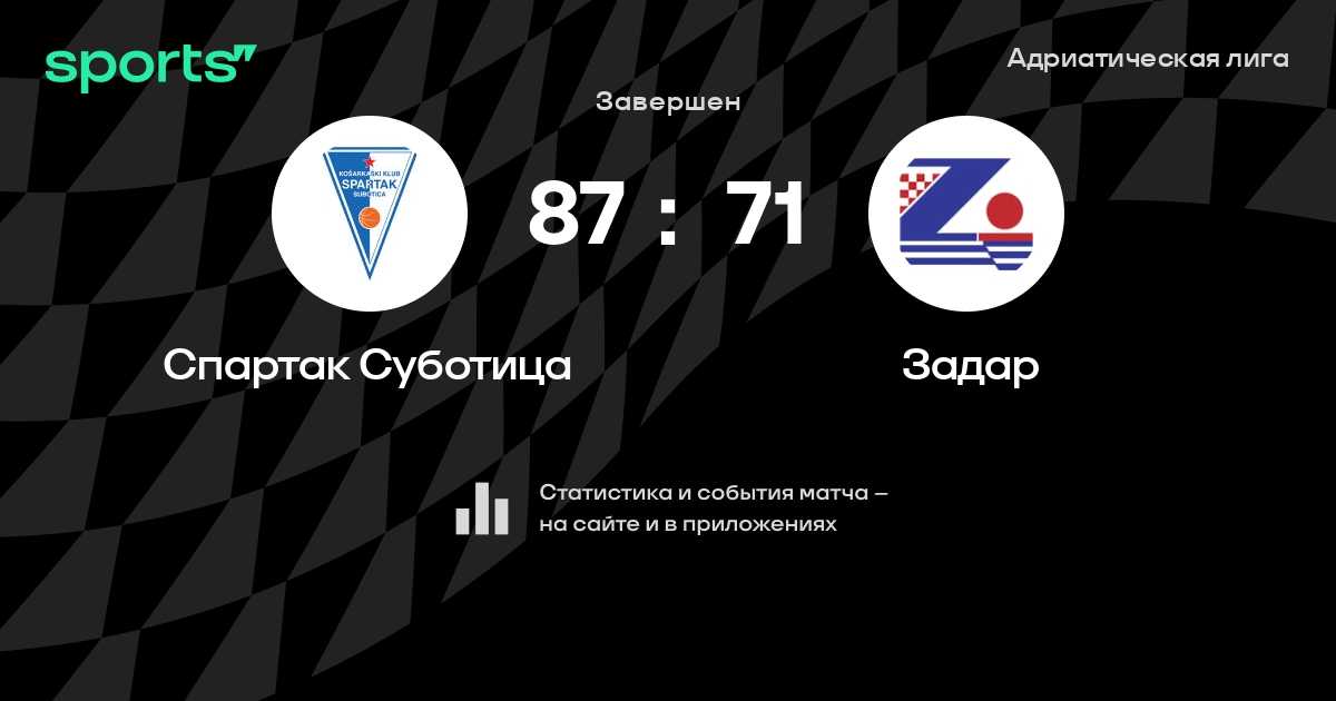 В прошедшем матче в рамках турнира Адриатическая лига состоялась встреча команд Спартак Суботица - Задар в городе на стадионе Sportska hala Dudova Šuma