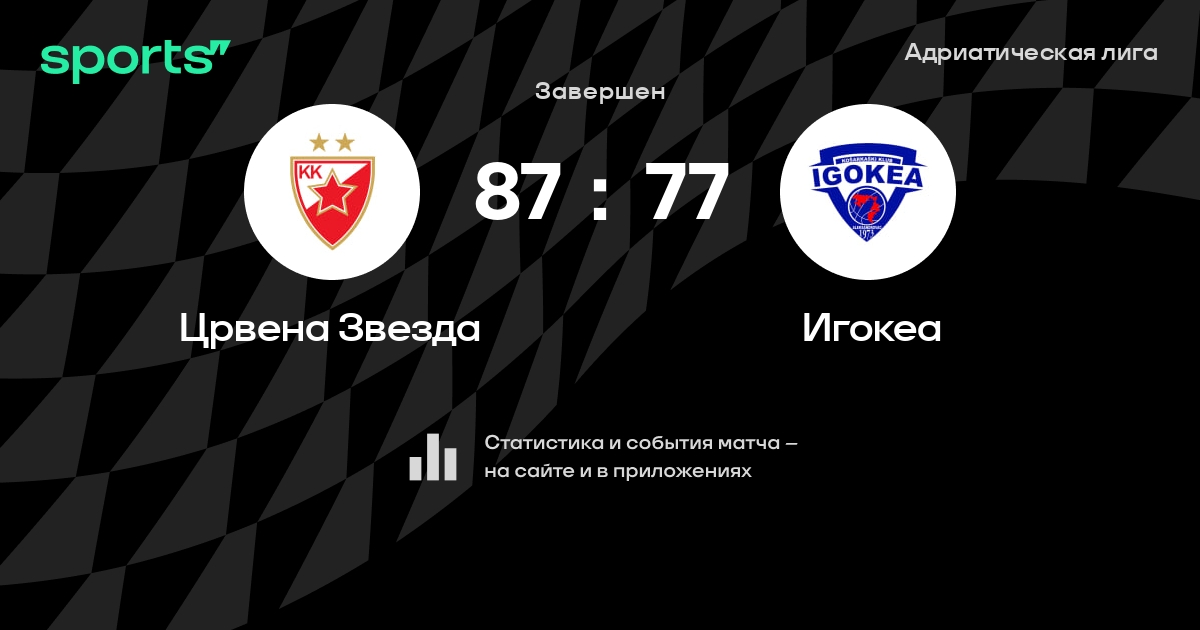 В прошедшем матче в рамках турнира Адриатическая лига (Четвертьфинал) состоялась встреча команд Црвена Звезда - Игокеа в городе Белград (Сербия) на стадионе Белград Арена (вместимость - 22386)
