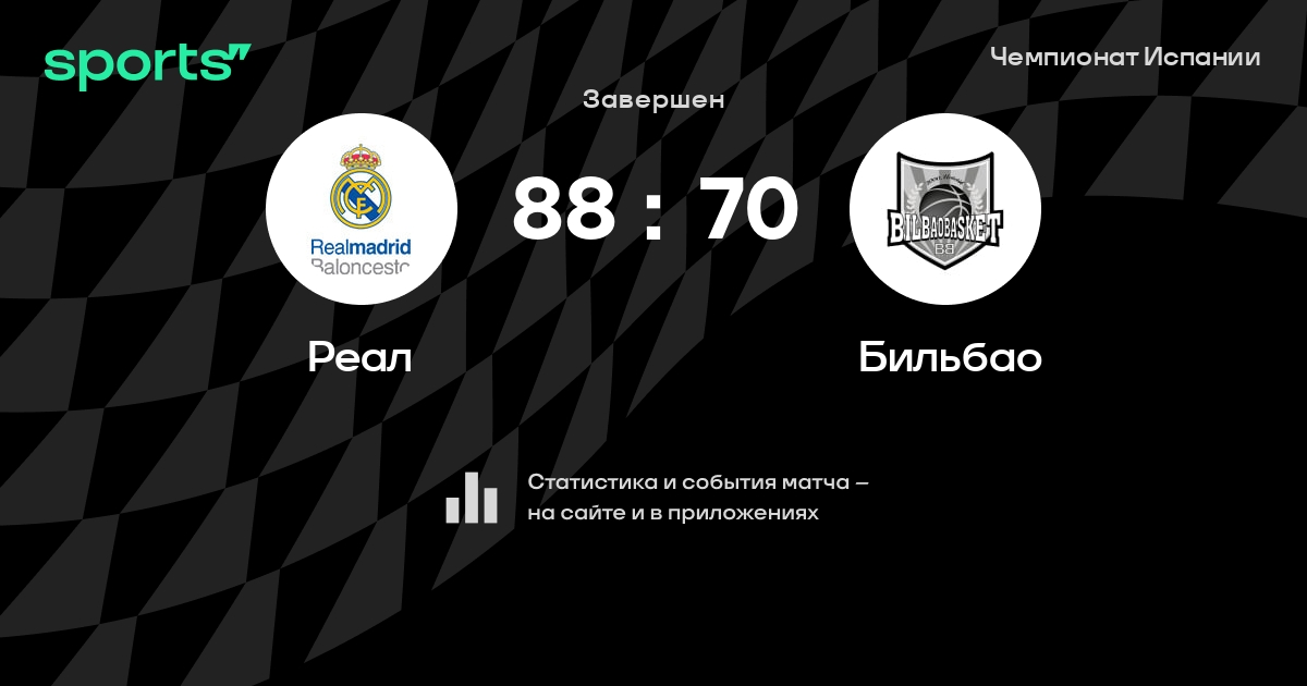 В прошедшем матче в рамках турнира Чемпионат Испании состоялась встреча команд Реал - Бильбао в городе Мадрид (Испания) на стадионе Мовистар Арена (вместимость - 15000)