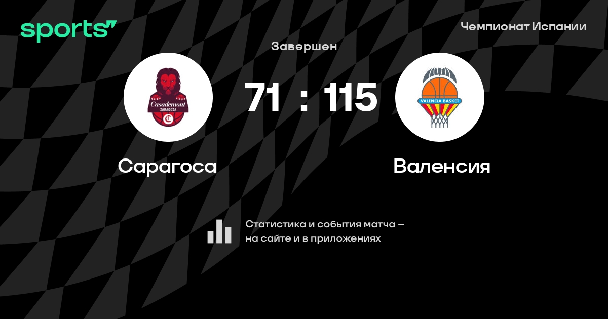 В прошедшем матче в рамках турнира Чемпионат Испании состоялась встреча команд Сарагоса - Валенсия в городе Zaragoza на стадионе Príncipe Felipe Arena
