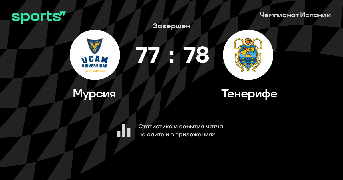 В прошедшем матче в рамках турнира Чемпионат Испании состоялась встреча команд Мурсия - Тенерифе в городе Murcia на стадионе Palacio Municipal De Deportes