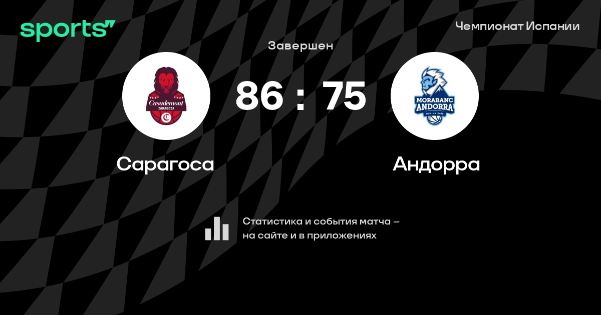 В прошедшем матче в рамках турнира Чемпионат Испании состоялась встреча команд Сарагоса - Андорра в городе Zaragoza на стадионе Príncipe Felipe Arena