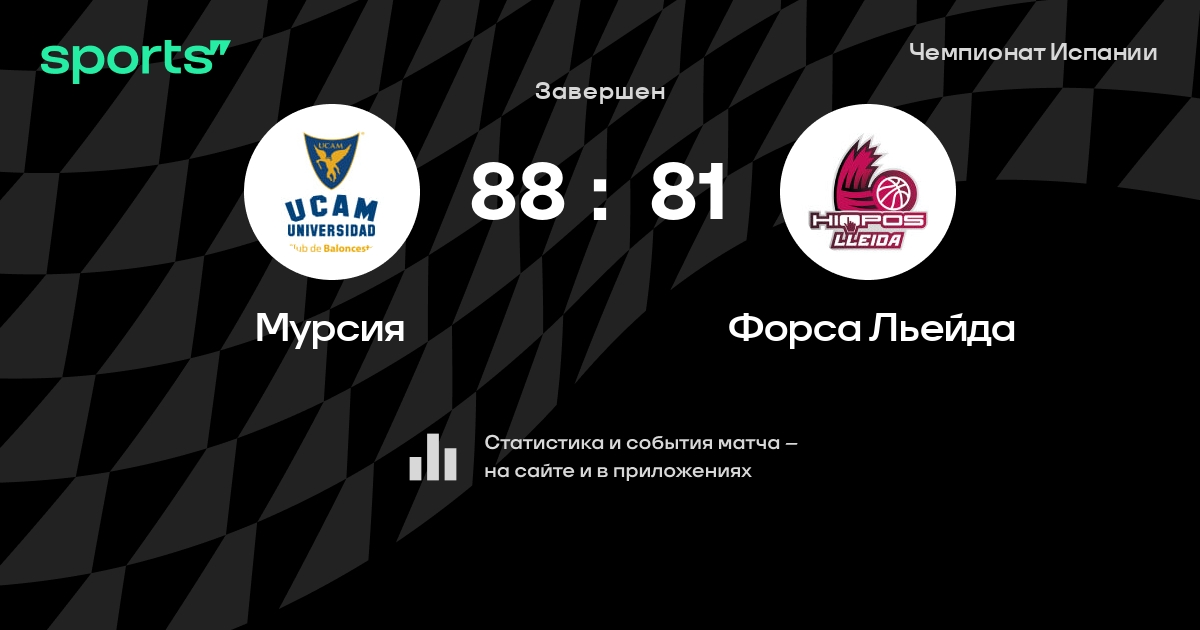 В прошедшем матче в рамках турнира Чемпионат Испании состоялась встреча команд Мурсия - Форса Льейда в городе Murcia на стадионе Palacio Municipal De Deportes