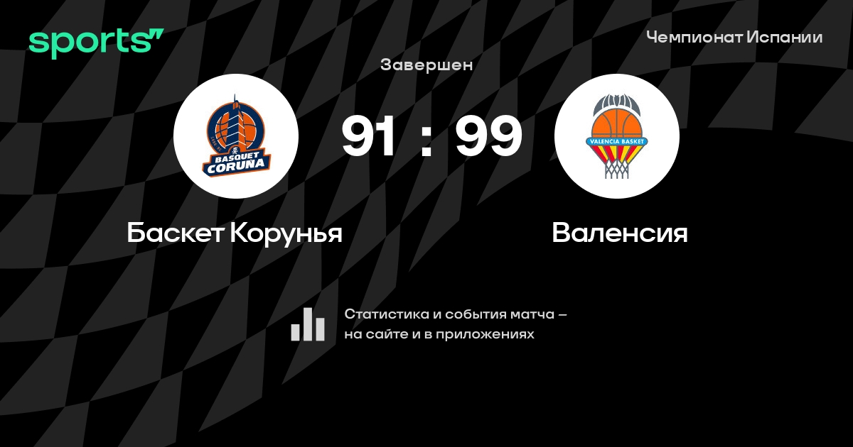 В прошедшем матче в рамках турнира Чемпионат Испании состоялась встреча команд Баскет Корунья - Валенсия в городе на стадионе Coliseum de La Coruña