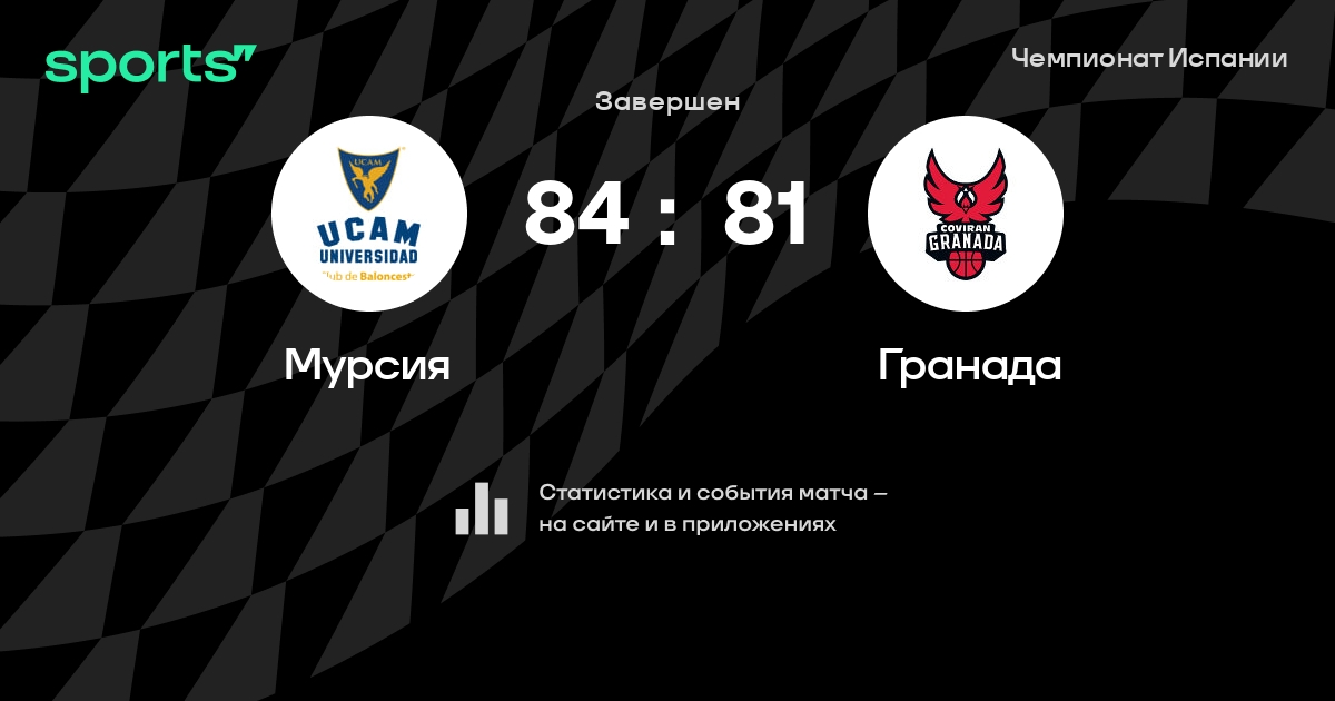 В прошедшем матче в рамках турнира Чемпионат Испании состоялась встреча команд Мурсия - Гранада в городе Murcia на стадионе Palacio Municipal De Deportes