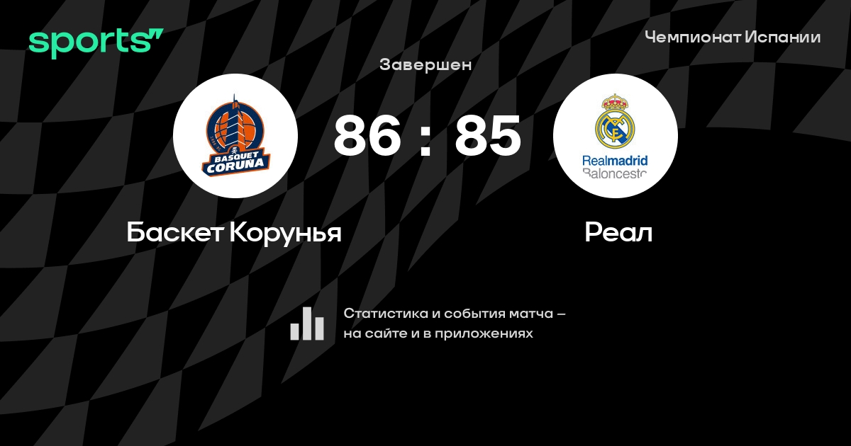 В прошедшем матче в рамках турнира Чемпионат Испании состоялась встреча команд Баскет Корунья - Реал в городе на стадионе Coliseum de La Coruña